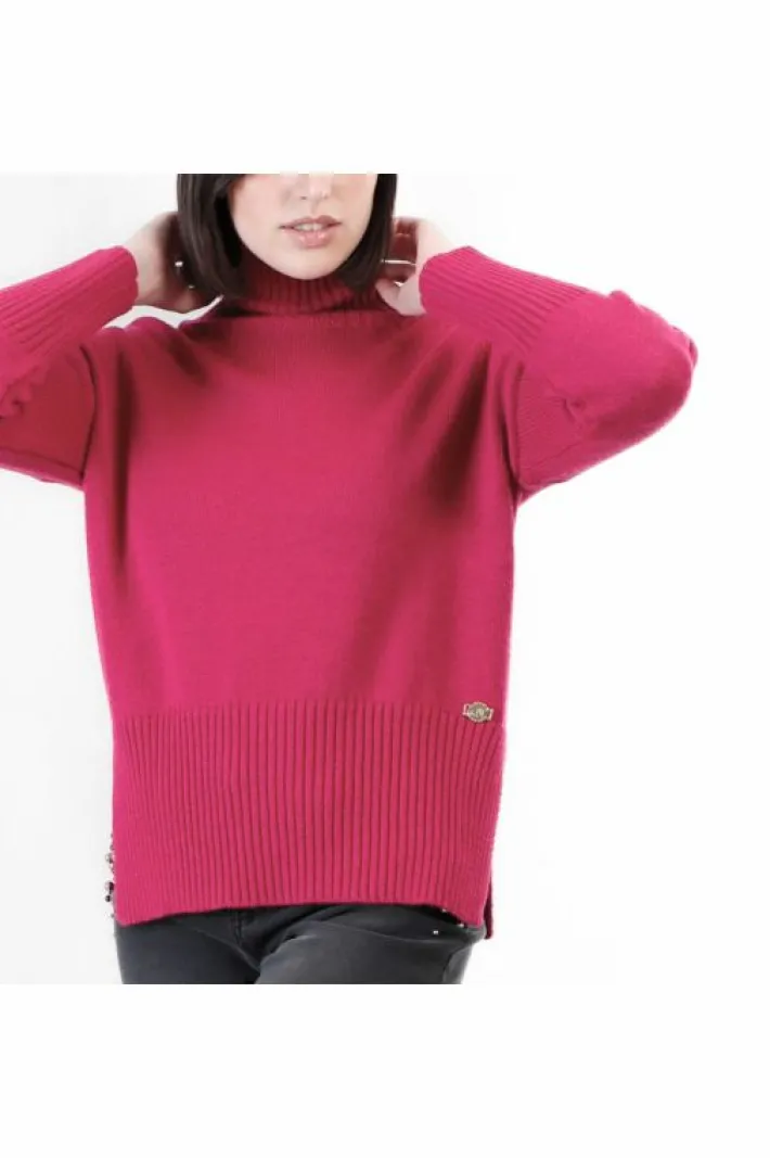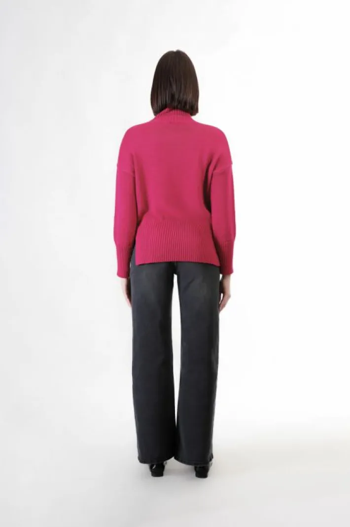 Maglia oversize in misto lana con collo alto e spacchi laterali sulla cucitura dei fianchi. capo dal tocco casual e moderno. perfetto da indossare tutti i giorni.