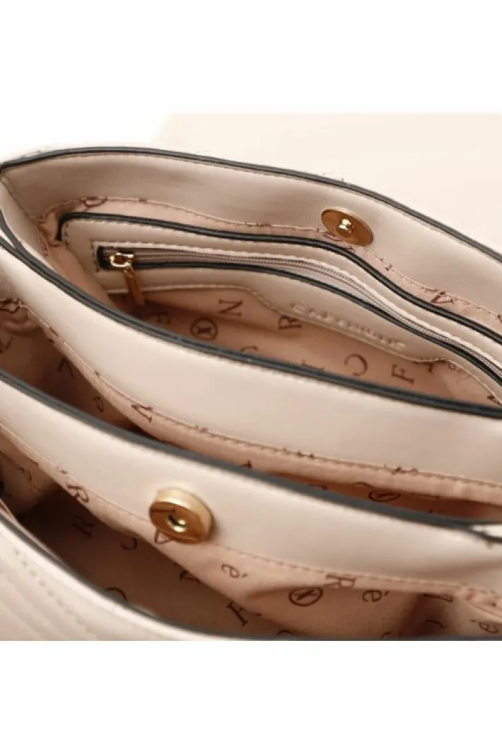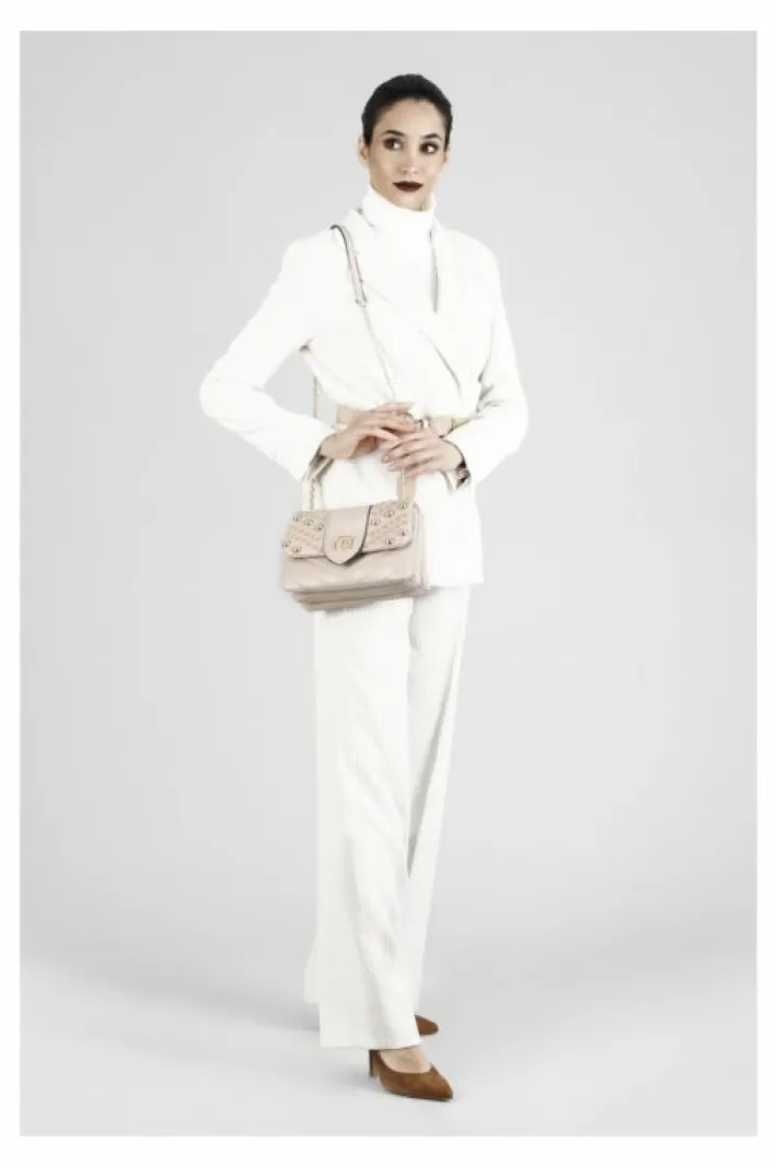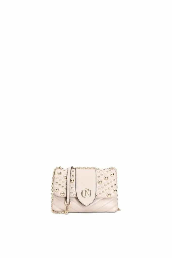 Minibag con pattina trapuntata tempestata da file di borchie semisferiche di diverse dimensioni e accessorio CafèNoir…