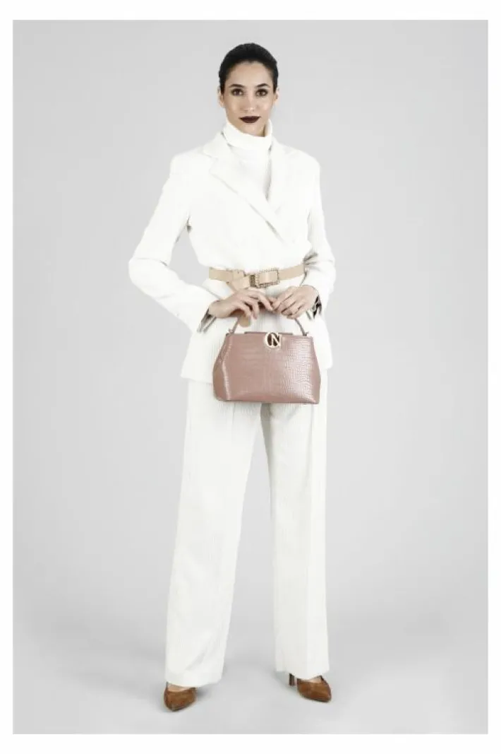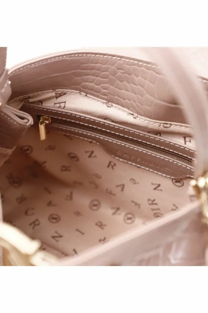 Minibag con pattina interna realizzata in similpelle stampa coccodrillo e impreziosita dall’accessorio CafèNoir sul davanti