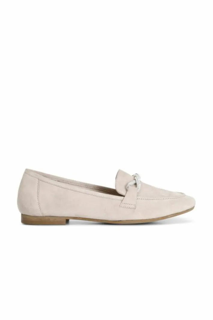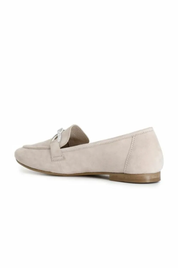 Mocassini donna in camoscio con mignon in strass. soletto in pelle. tacco alto 12 mm.
