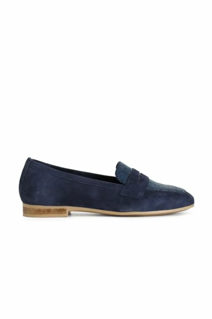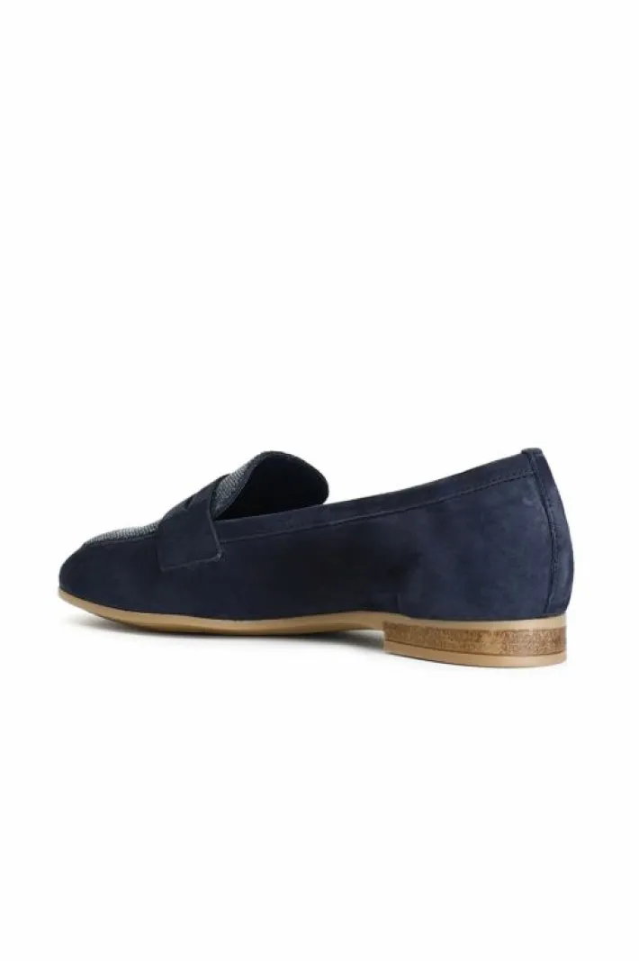 Mocassini in pelle scamosciata arricchiti da strass sulla vaschetta. il soletto è in pelle. tacco alto 15mm. modello versatile e dinamico ideale per completare moltissimi outfit.