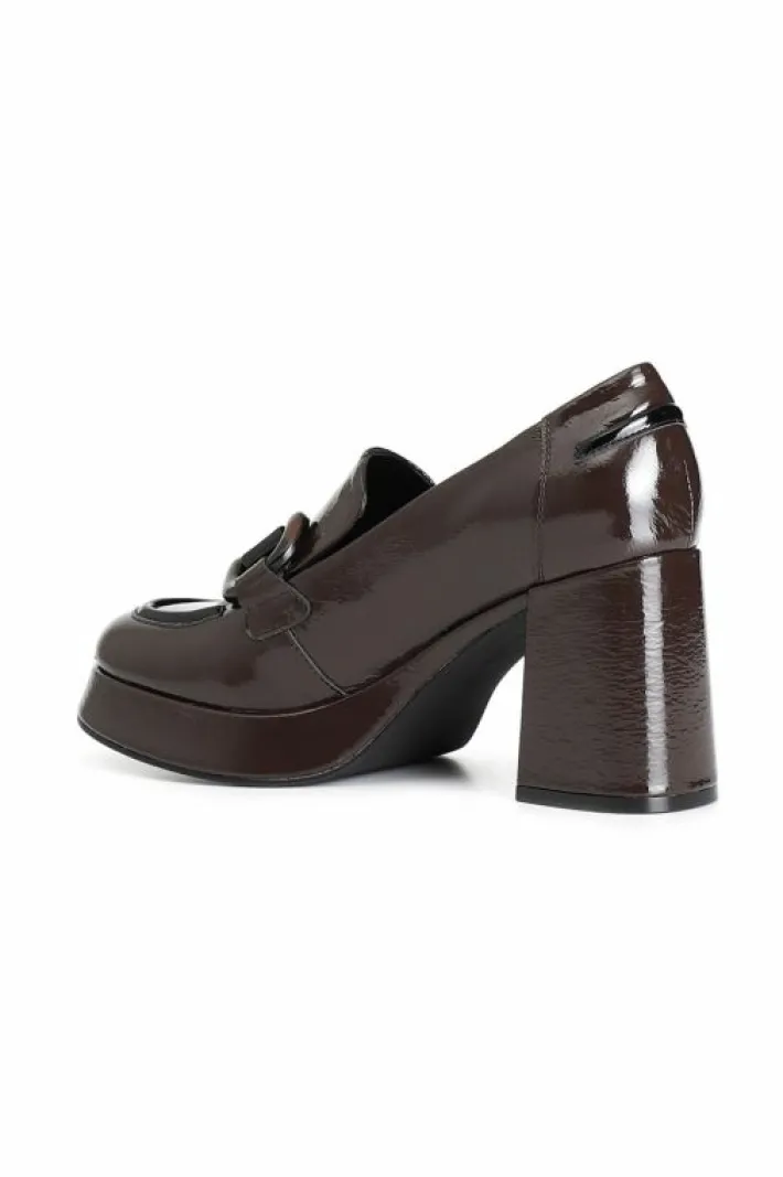 Mocassino da donna in naplak con morsetto. tacco 80 mm plateau 20 mm. fodera in tessuto e soletto in pelle. comodità ed eleganza allo stesso tempo ed un carattere unico adatto ad ogni outfit.