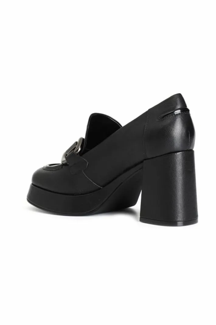 Mocassino da donna in nappa con morsetto. tacco 80 mm plateau 20 mm. fodera e soletto sono in pelle. comodità ed elegan…