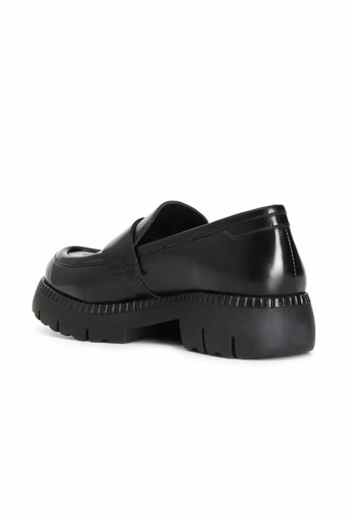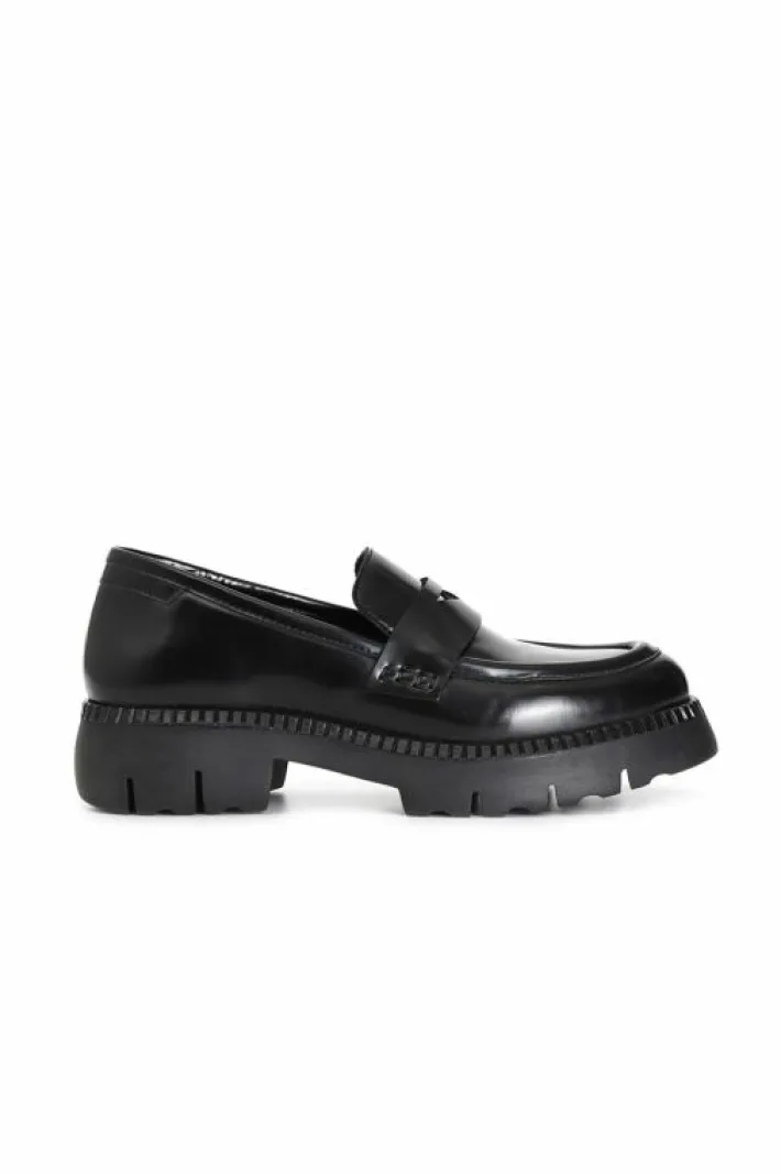 Mocassino da donna in pelle con passante e accessorio moneta. fodera e soletto sono in pelle. plateau alto 25 mm. tacco …