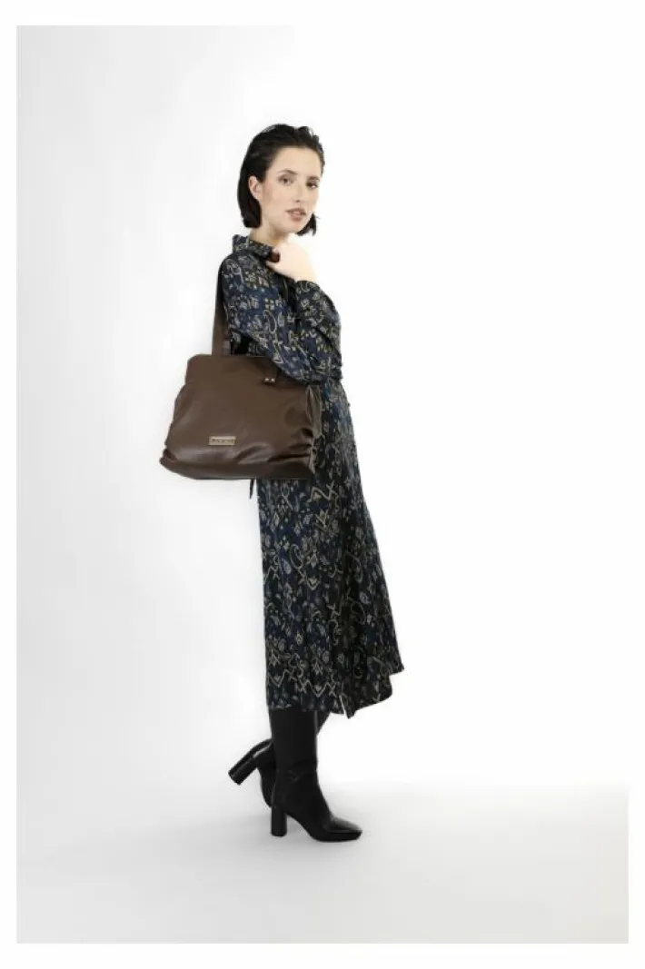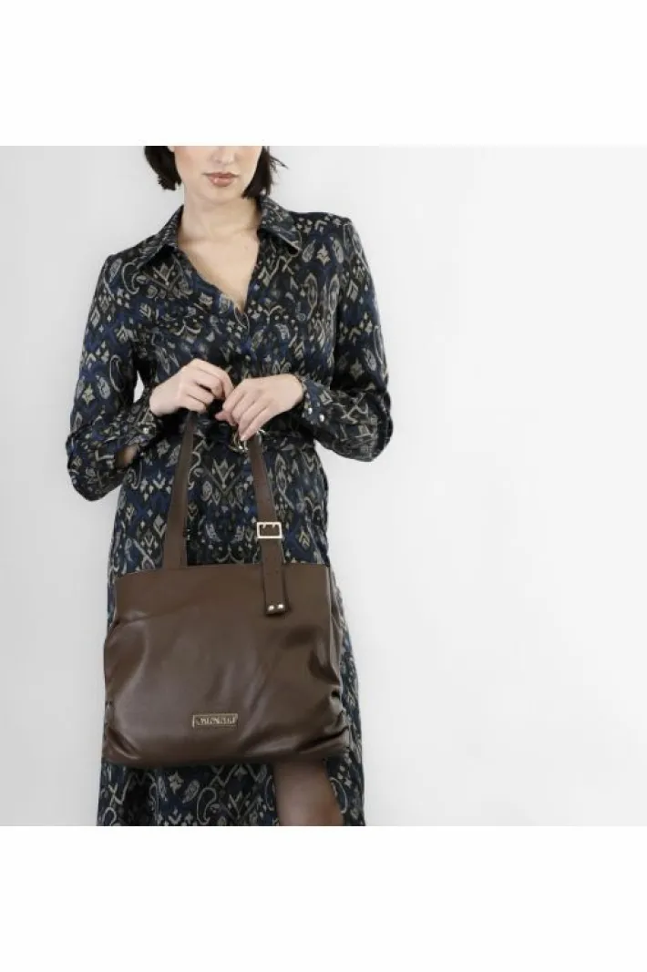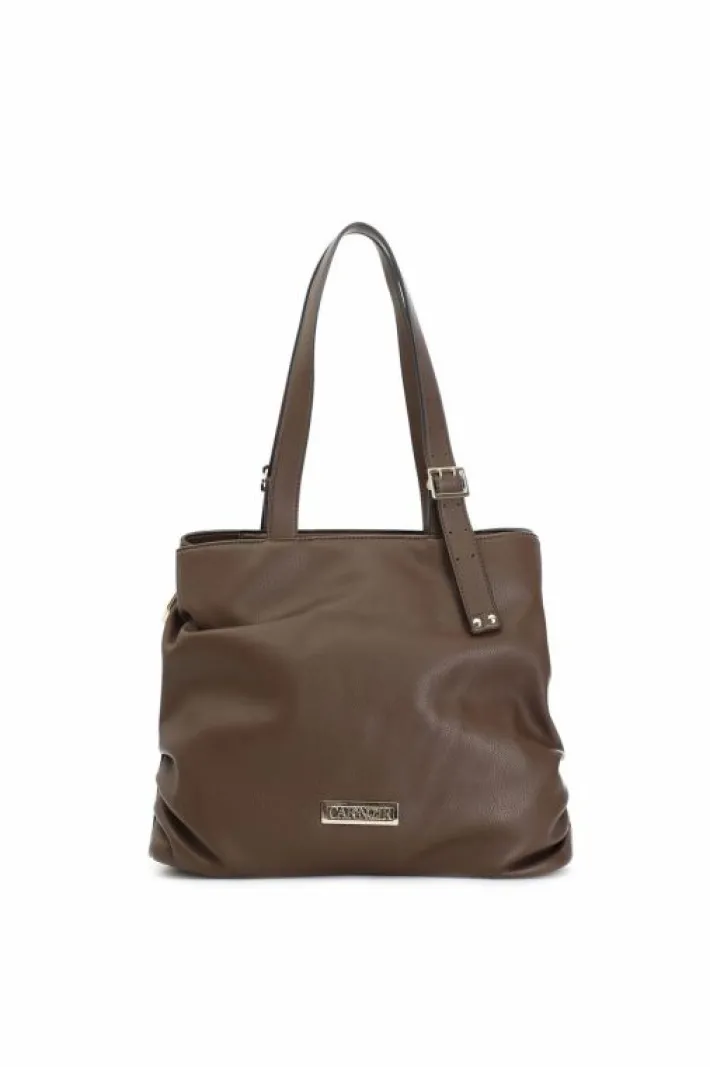 Shopping dalla forma morbida con logo cafènoir. manici regolabili con fibbia.