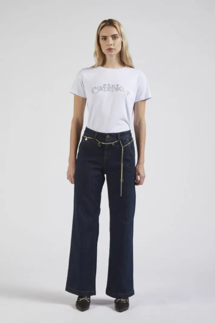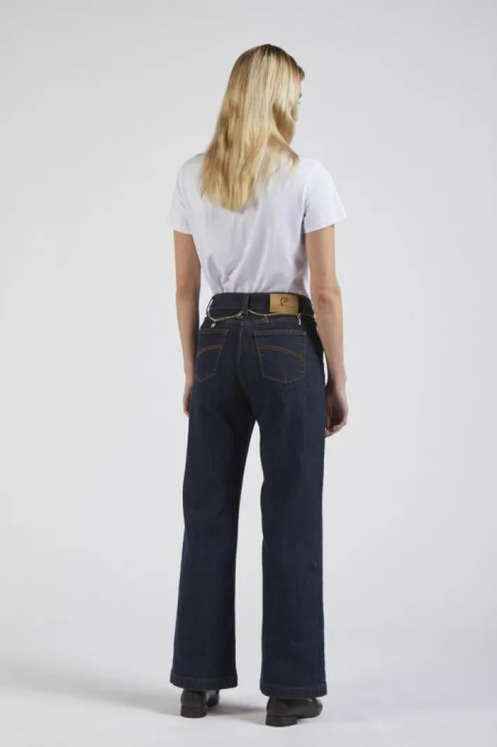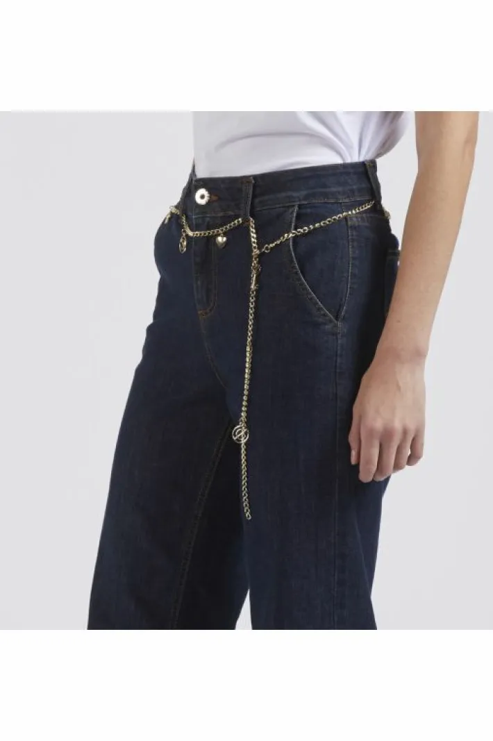 Jeans dalla vestibilità palazzo con cintura gioiello realizzata in tela denim comfort.