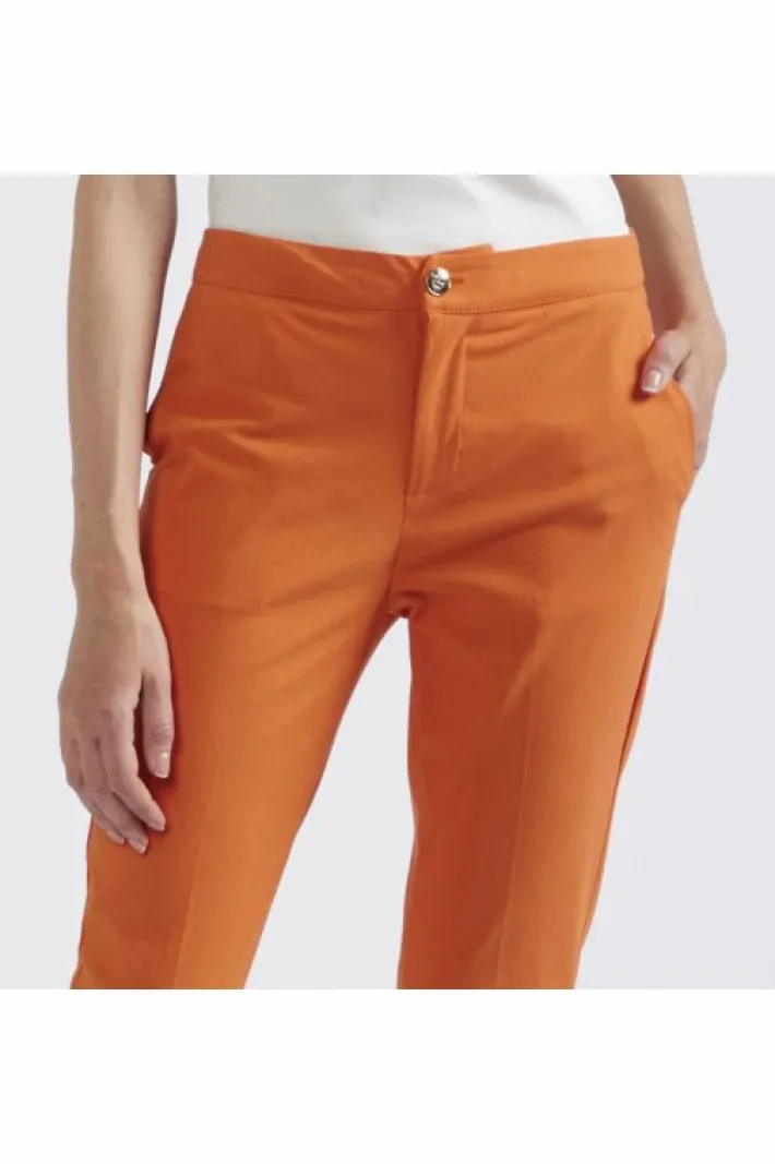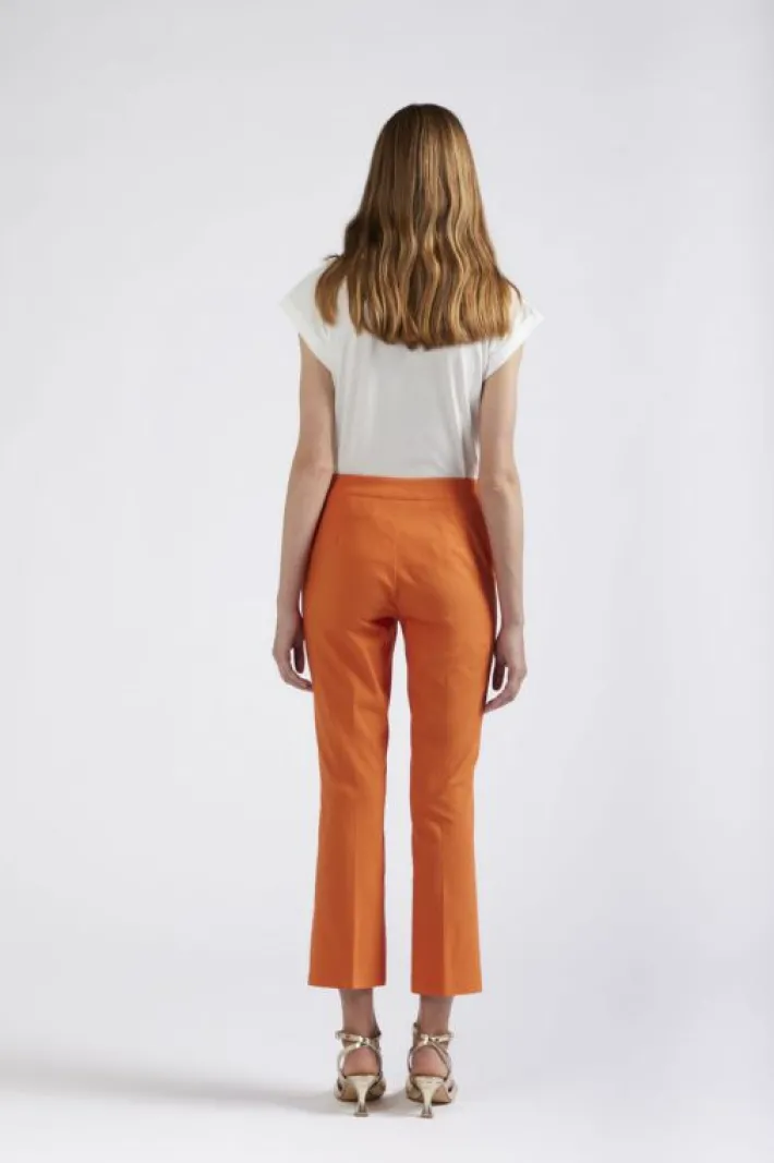 Pantaloni dalla vestibilità cropped flare in tessuto superstretch dall’effetto fiammato. chiusura con cerniera e bottone.