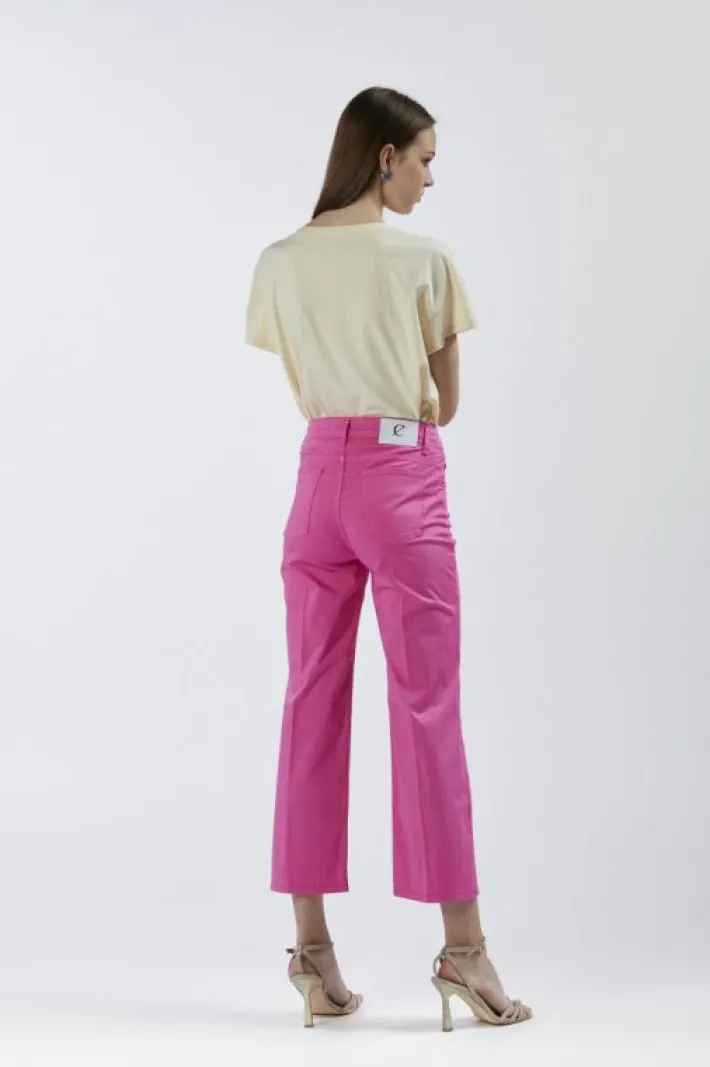 Pantaloni cinque tasche dalla vestibilità culotte. capo in rasatello di cotone tinto capo. chiusura con cerniera e bottone.