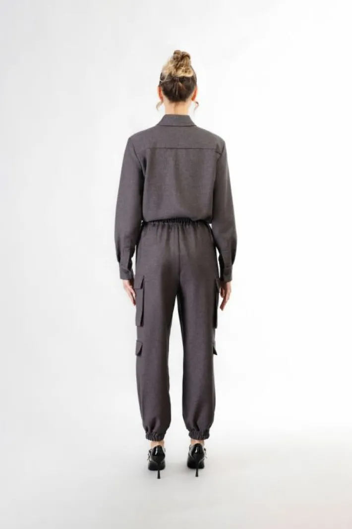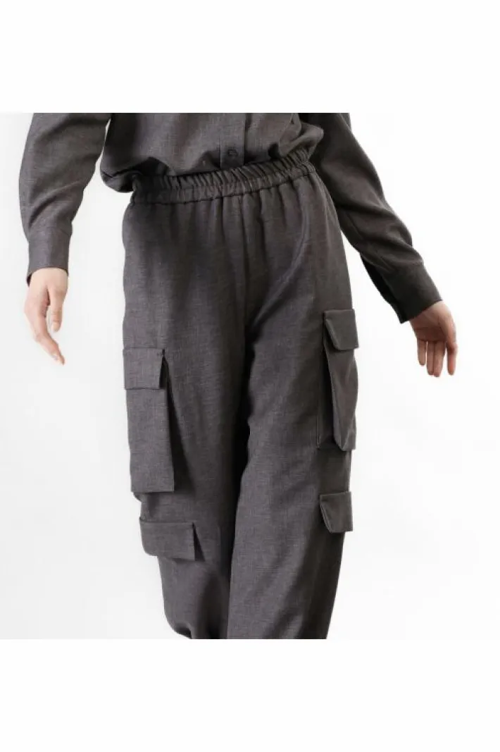 Pantaloni modello cargo con polsino e vita elasticata. realizzati in tessuto dalla costruzione in grisaglia. must-have del guardaroba da indossare il giorno con un la sua camicia in coordinato o una maglia.