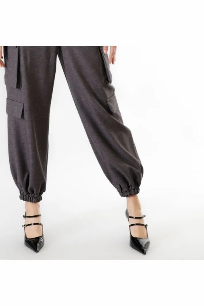 Pantaloni modello cargo con polsino e vita elasticata. realizzati in tessuto dalla costruzione in grisaglia. must-have d…