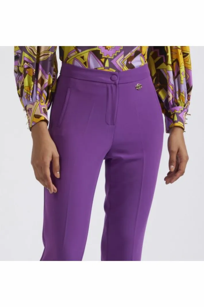 Pantaloni tipo chino con tasche a filetto dall’aspetto elegante e raffinato. realizzato in un fresco tessuto fluido.