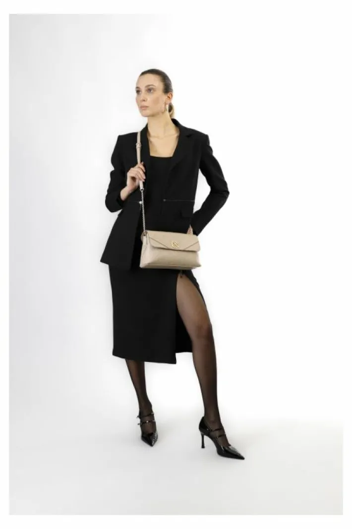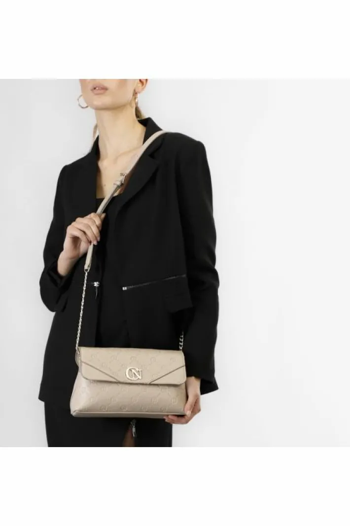 Pattina con stampa logo embossed all over tracollina catena. tasca interna con zip. chiusura con cerniera e calamita.