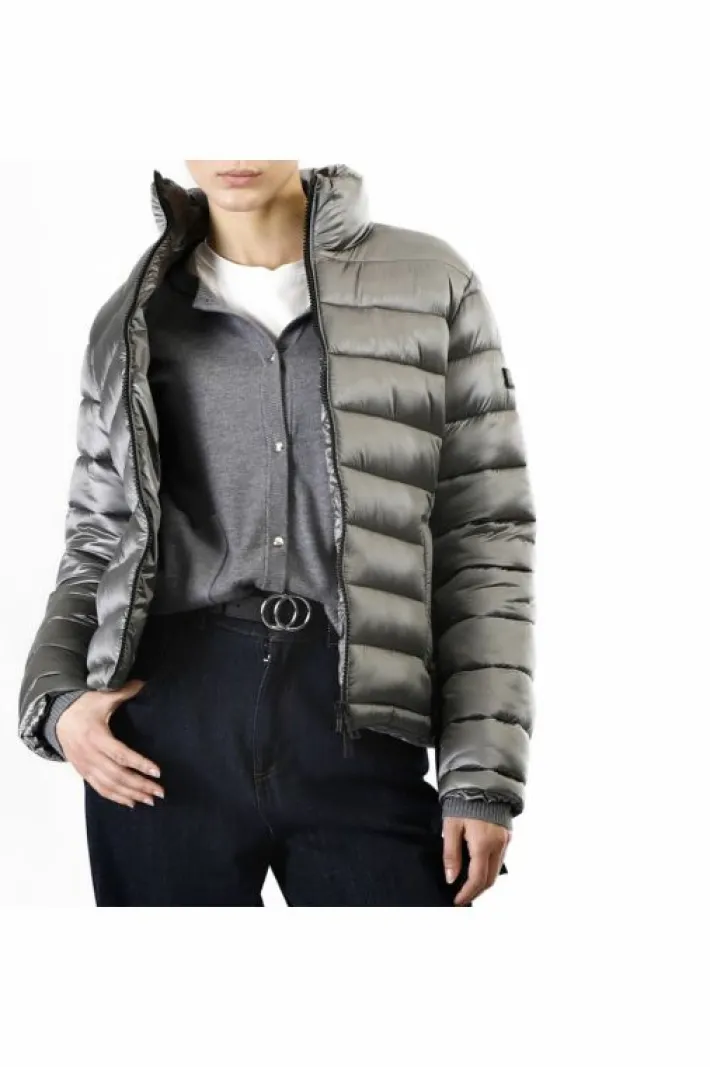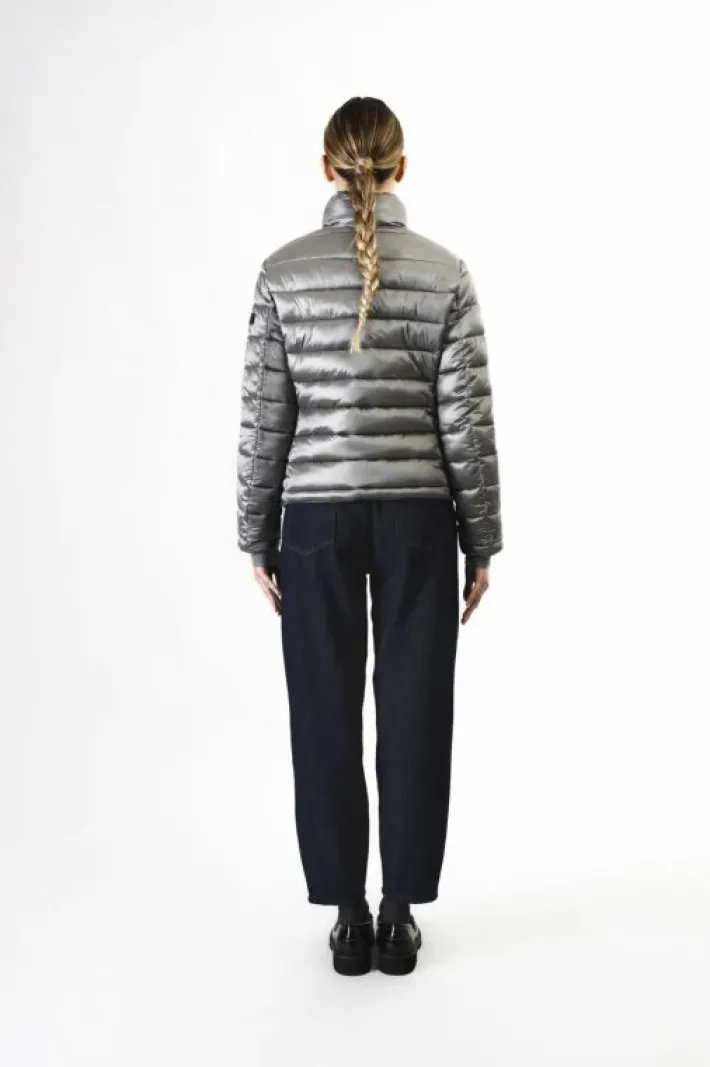 Piumino corto avvitato che delinea il punto vita. dalla linea essenziale ma sempre attuale. chiusura con zip doppio cursore tasche con zip. realizzato in un nylon leggero ed impalpabile dall’aspetto superlucido. versatile e pratico capo immancabile nel guardaroba della nuova stagione autunno inverno.