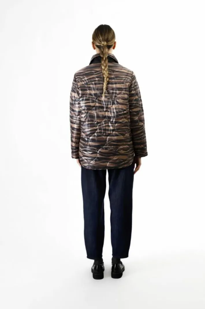 Piumino reversibile con un lato tinta unita e un lato stampato. tasche su entrambi i lati applicate. capo perfetto per a…
