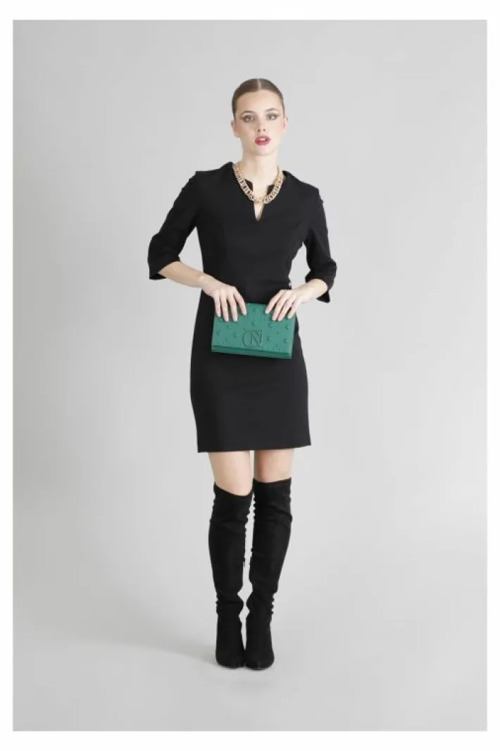 Pochette con logo e borchie a rilievo. pochette provvista di unico scomparto di taschini interno portacarte e di tracolla. chiusura con calamita.