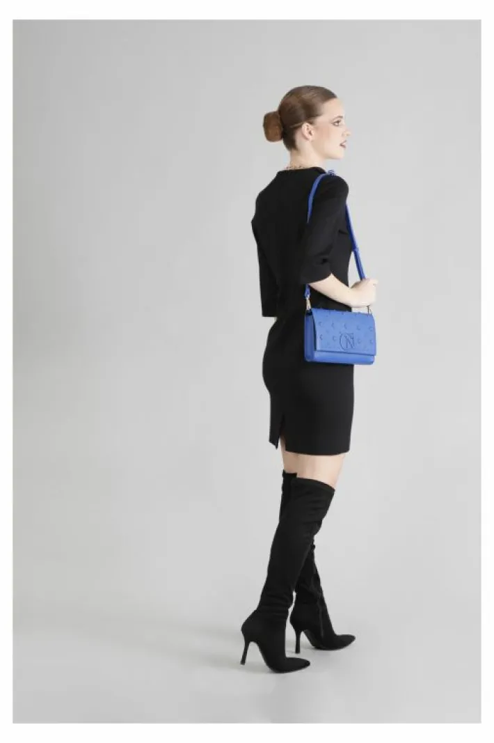 Pochette con logo e borchie a rilievo. pochette provvista di unico scomparto di taschini interno portacarte e di tracolla. chiusura con calamita.
