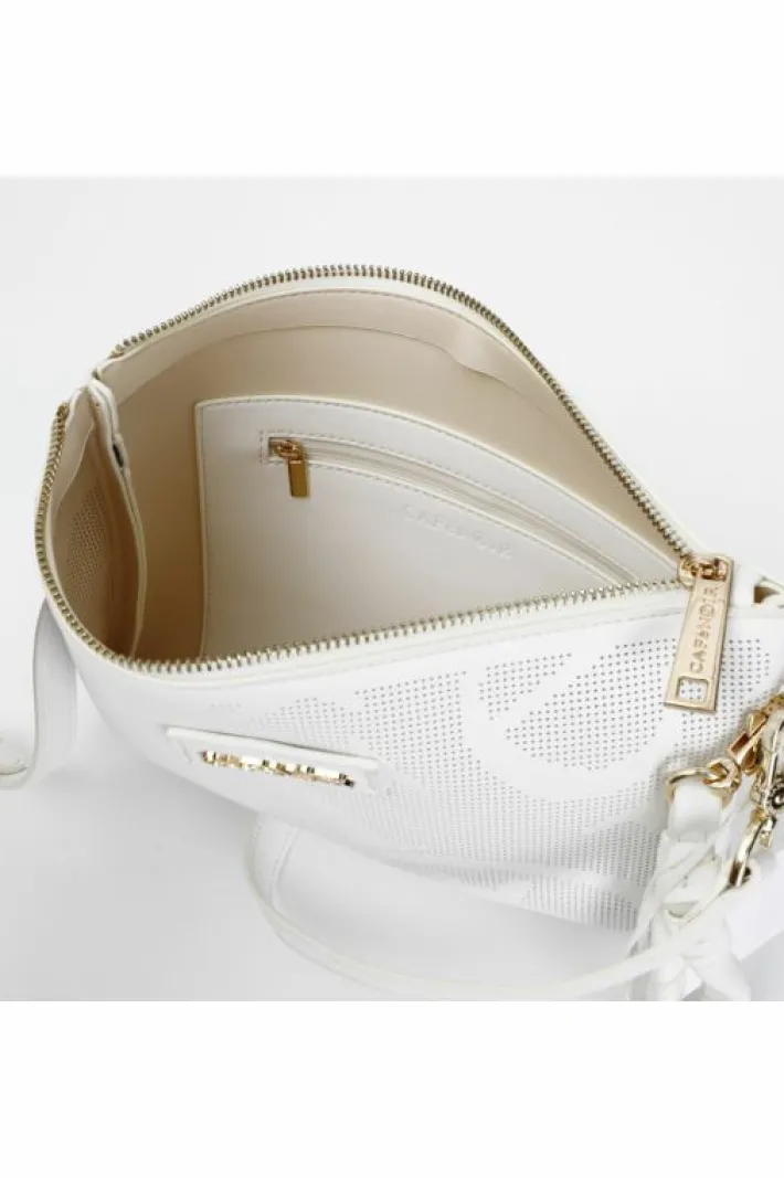 Pochette sfoderata con maxi logo laserato all over. manicotto lavorato. chiusura con cerniera. scomparto interno con taschino con cerniera. borsa dotata di tracolla.