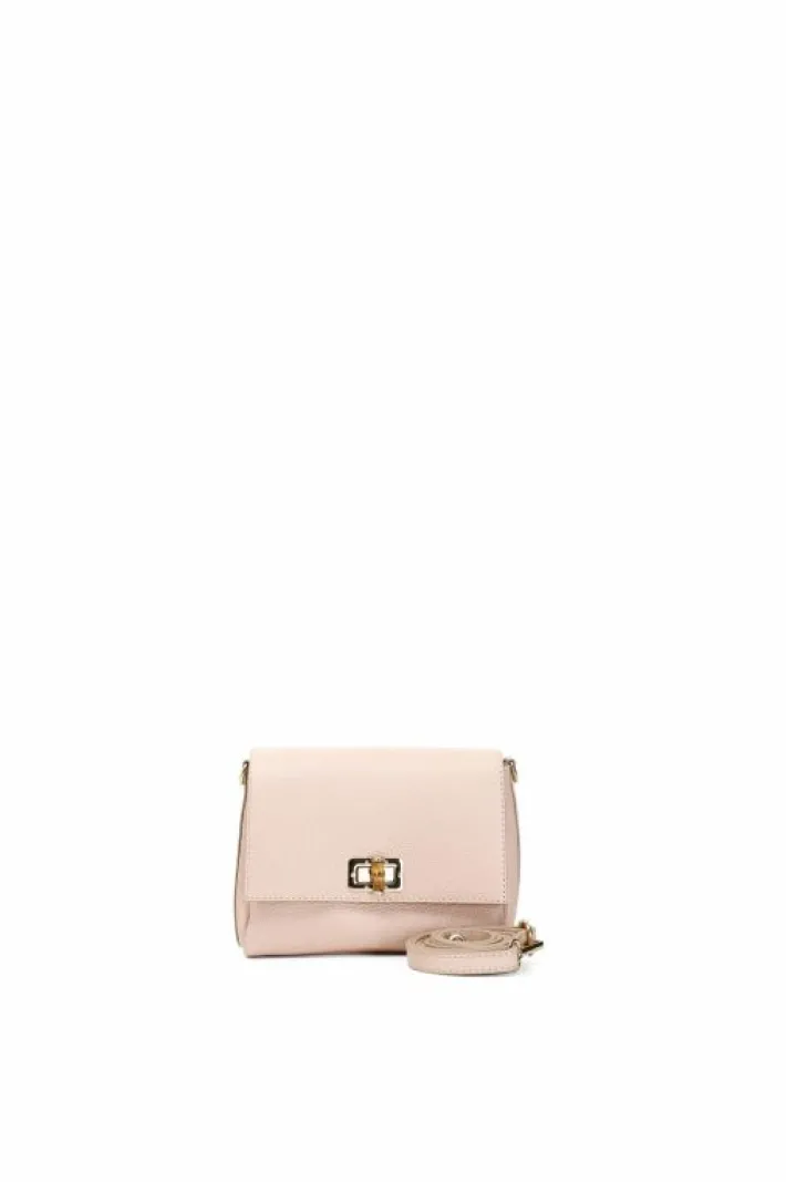 Pochette in pelle martellata con pattina con chiusura metallo e bamboo. borsa dotata di tracolla.