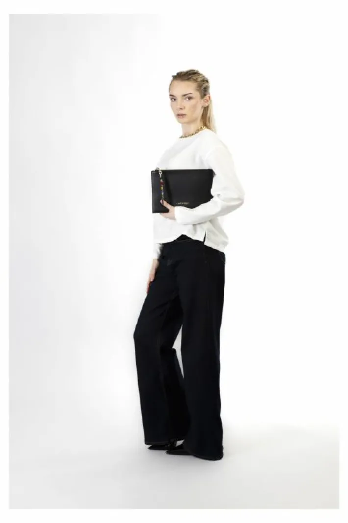 Pochette dalla struttura rigida in saffiano. tiralampo con letterine personalizzate e colorate. chiusura con cerniera. t…