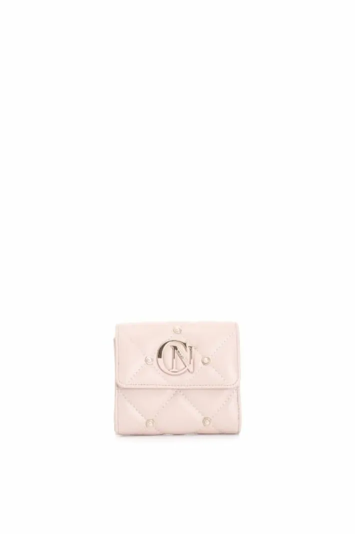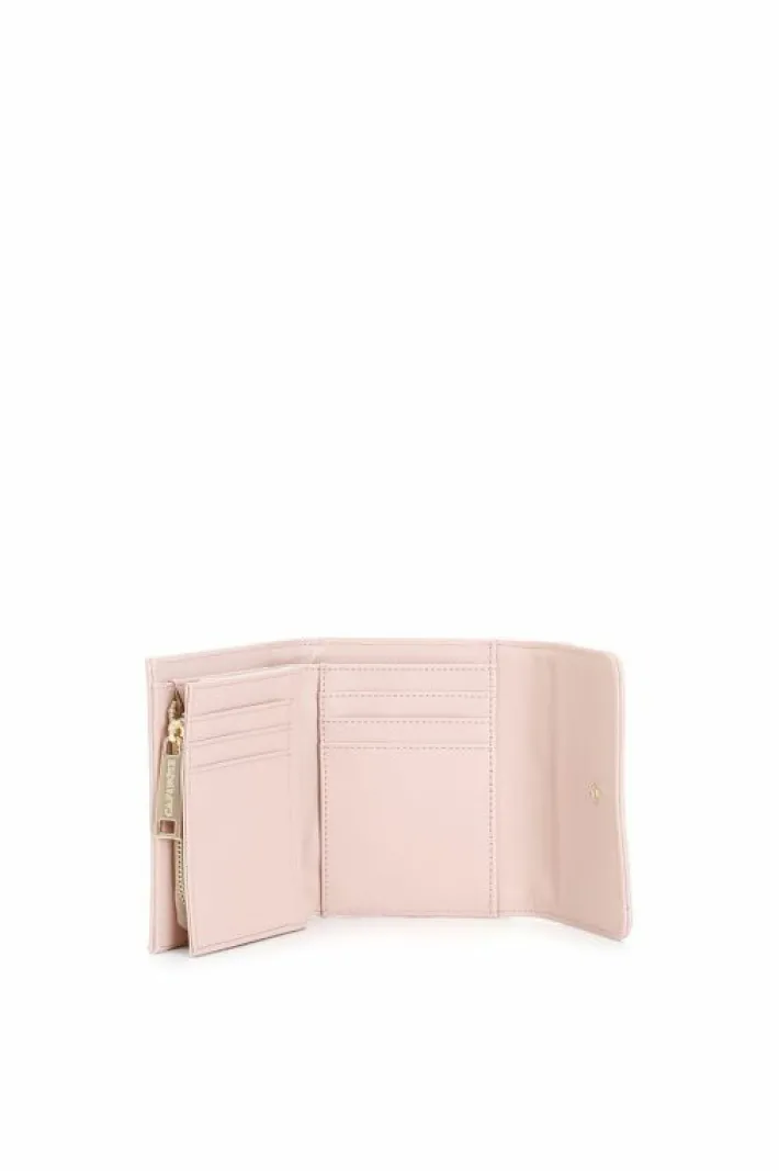 Portafoglio piccolo da donna con pattina e applicazone di rivetti colorati e logo bicolore