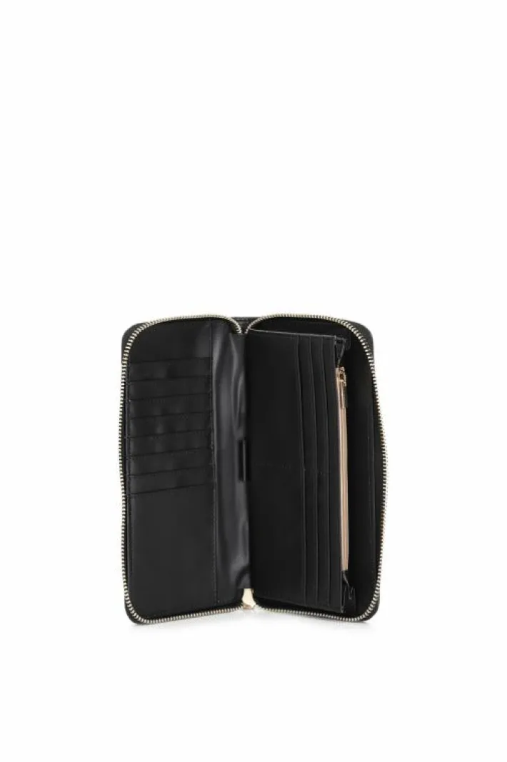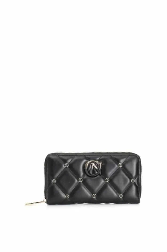 Portafoglio grande da donna con zip round e applicazone di rivetti colorati e logo bicolore
