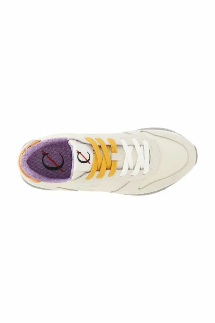 Sneakers da donna allacciate in pelle scamosciata e tessuto. logo argentato laterale con monogramma cafènoir. altezza suola 30 mm. fussbett interno.