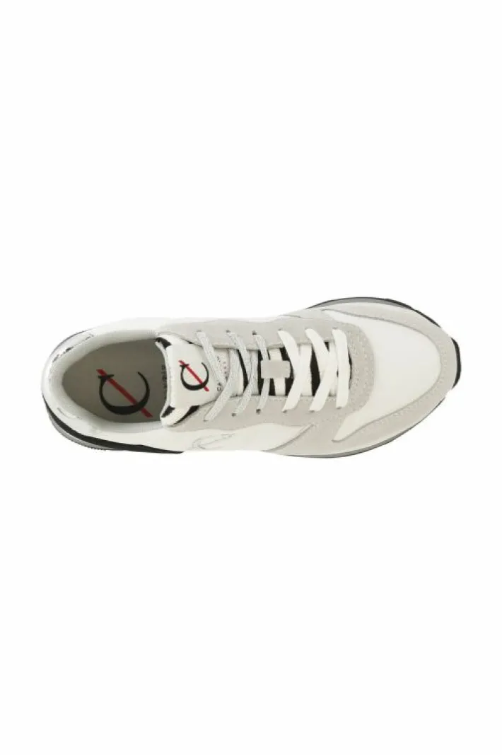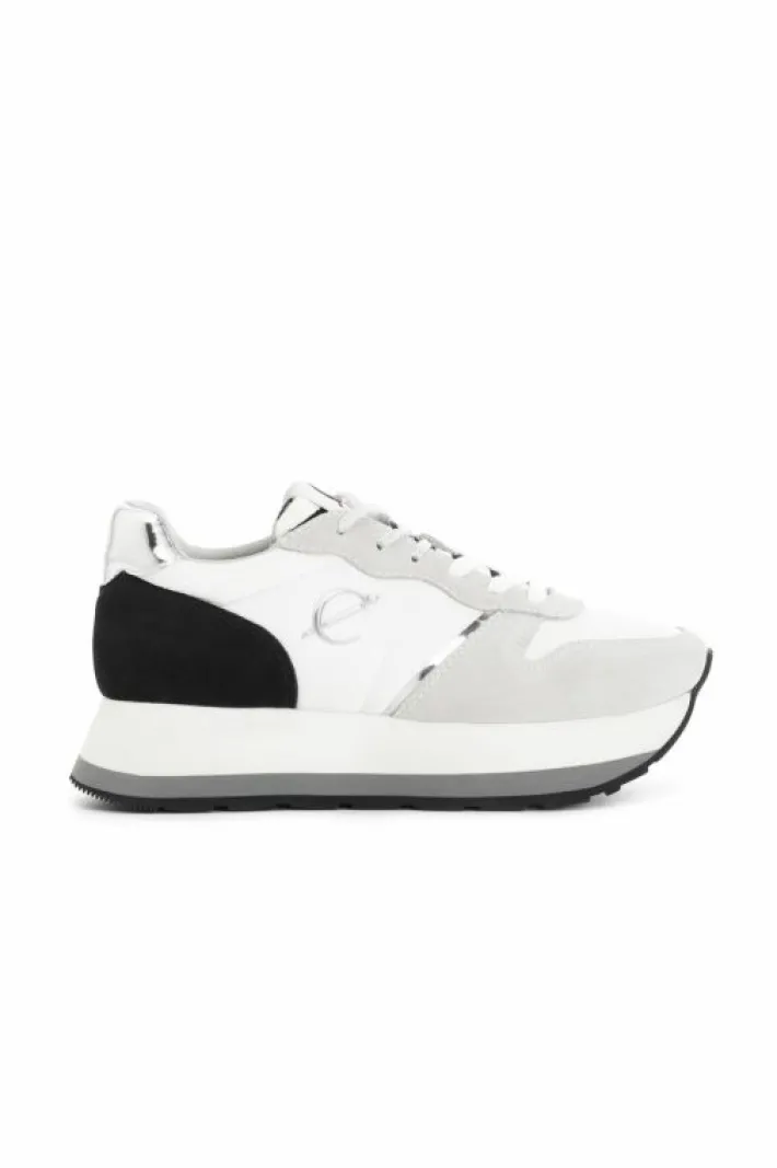 Sneakers da donna allacciate in pelle scamosciata e tessuto. logo argentato laterale con monogramma cafènoir. altezza suola 30 mm. fussbett interno.