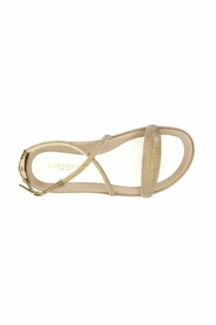 Sandali incrociati con strass costruiti da una fascia piatta e da un incorcio sul collo del piede che si chiude con un c…