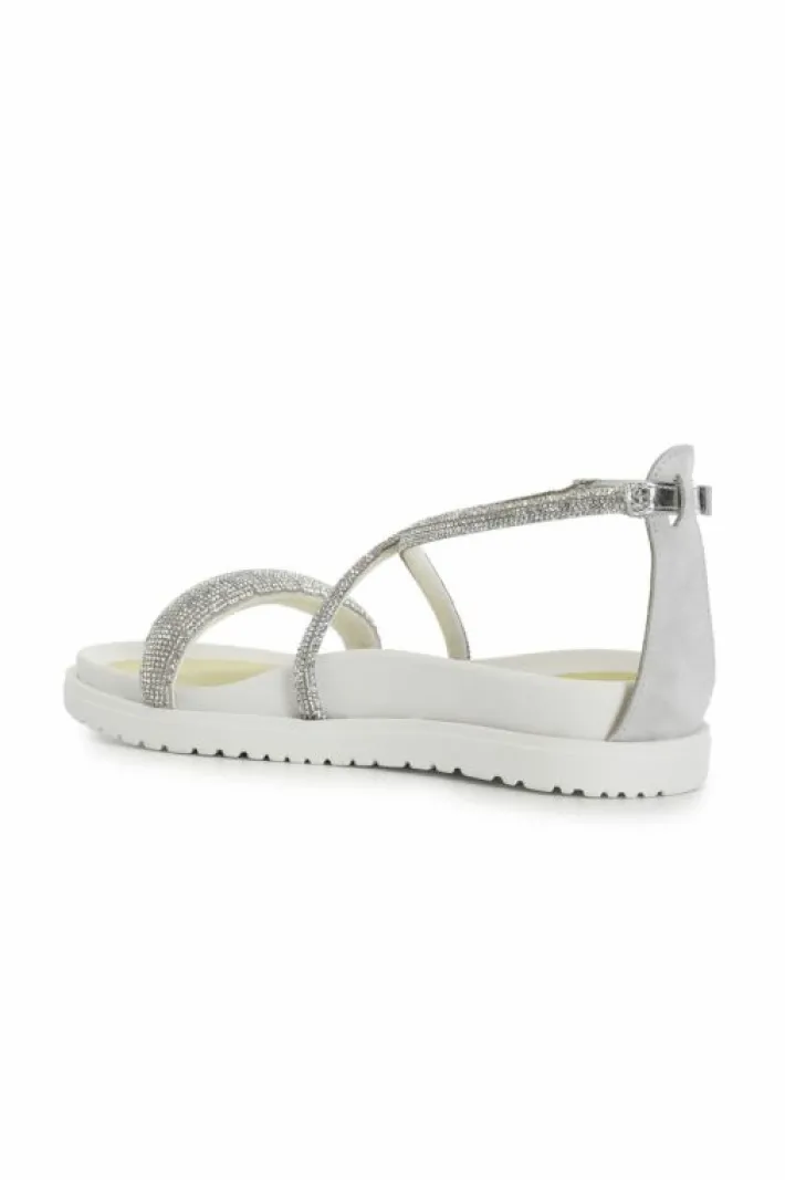 Sandali incrociati con strass costruiti da una fascia piatta e da un incorcio sul collo del piede che si chiude con un c…