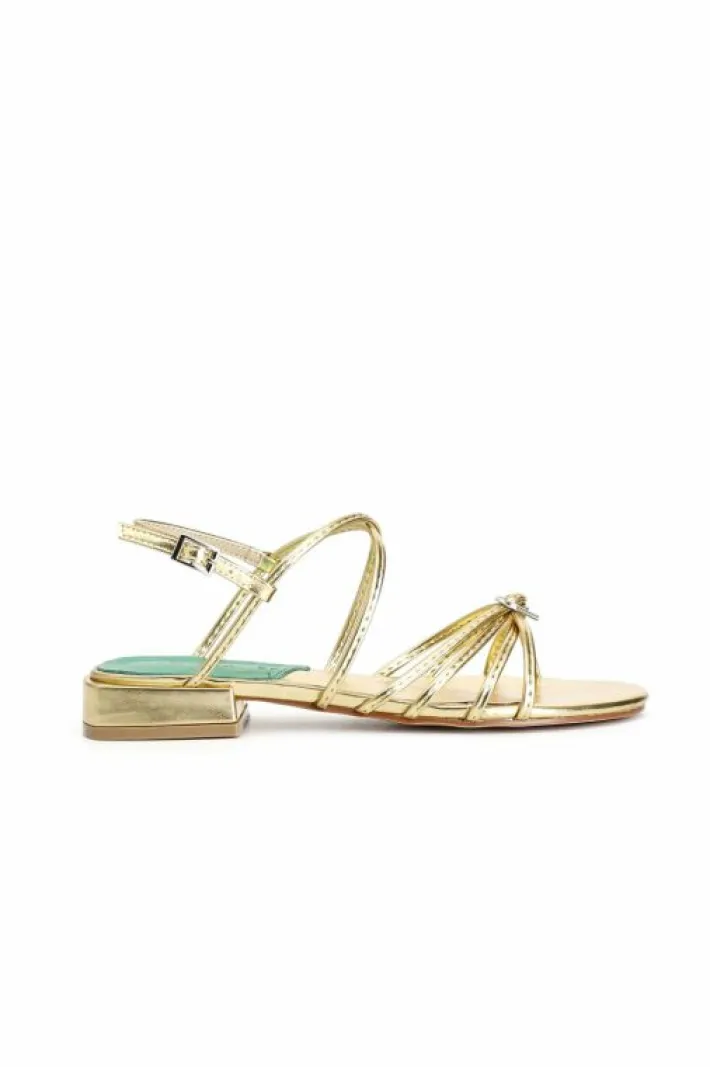 Sandali con multilistini con effetto laminato caratterizzato da un doppio incrocio. accessorio frontale a forma di cuore. comodo soletto imbottito per una calzata morbida. tacco alto 20mm. comodi da indossare e facili da abbinare.
