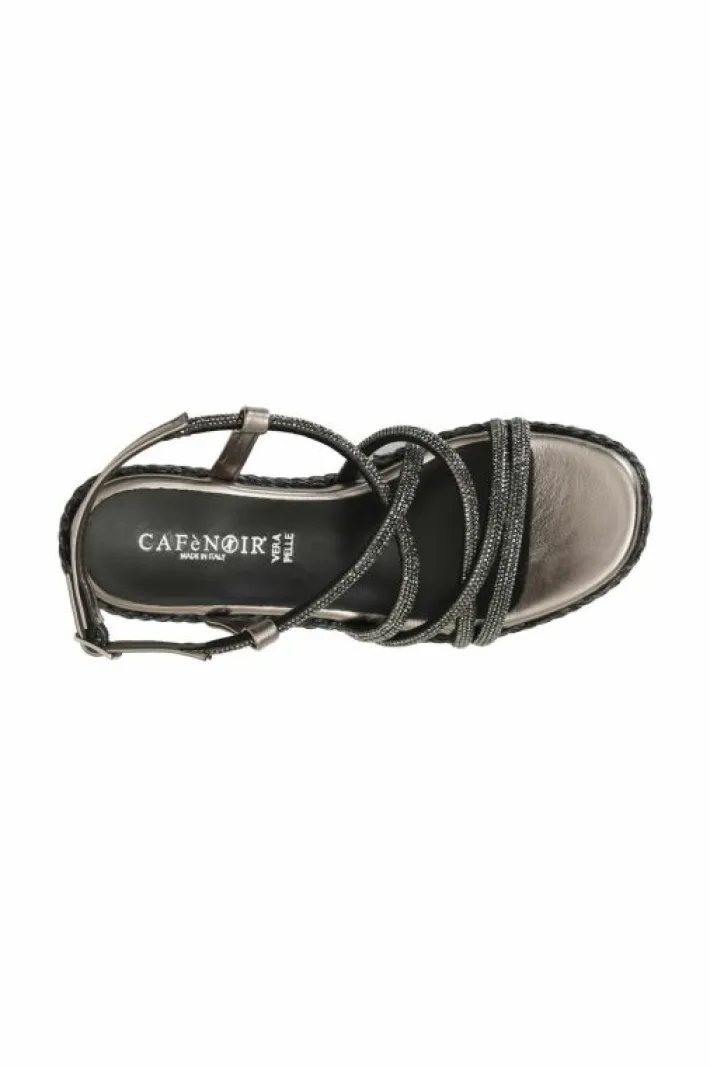 CafèNoir sandali con fasce incrocio strass su zeppa in rafia