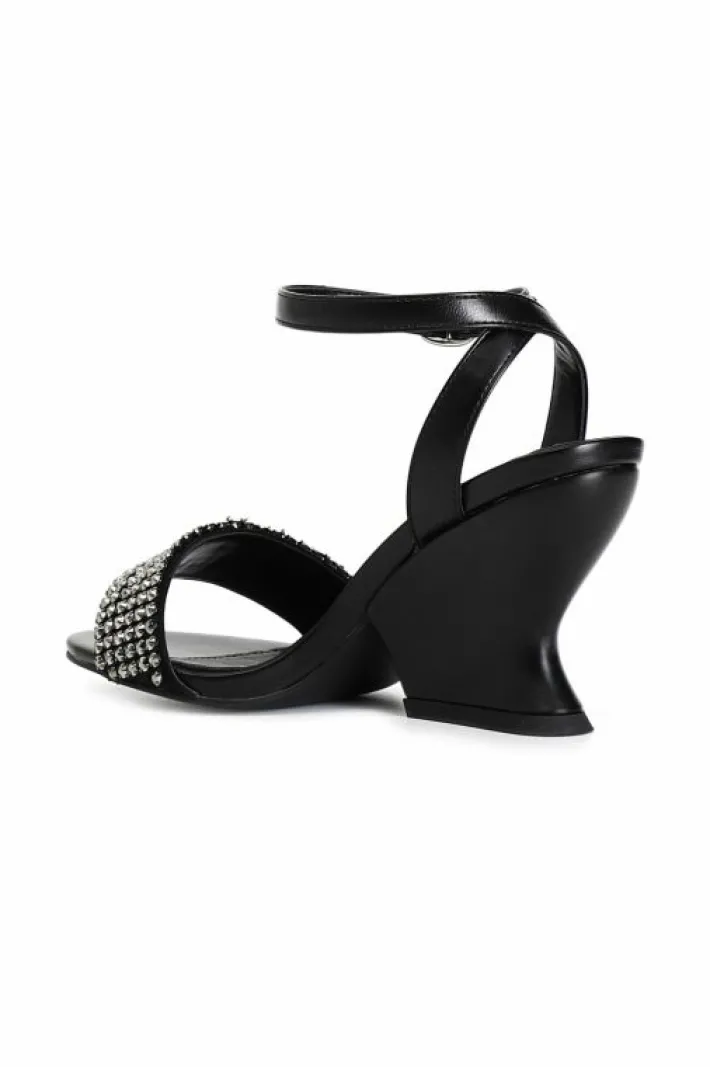 Sandalo con fascia strass e cinturino con fibbia alla caviglia. originale e comodo il tacco a zeppa alto 80mm.