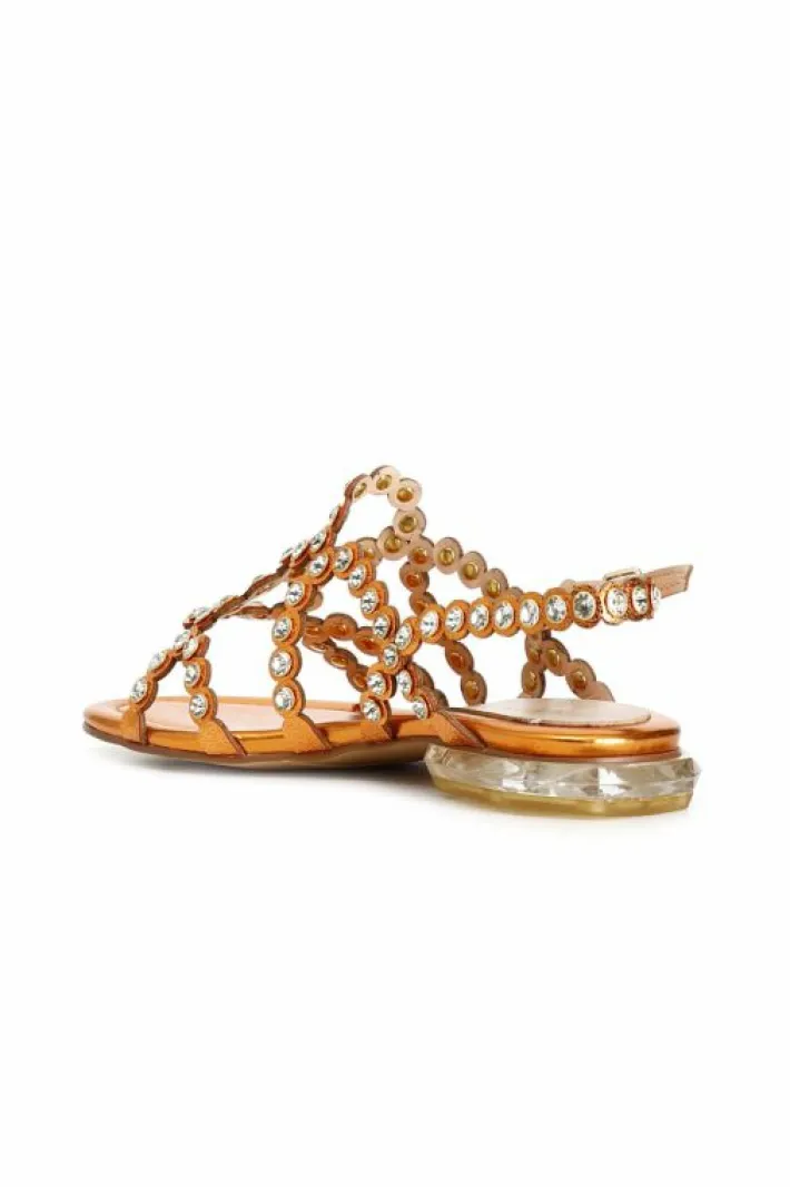 Sandali con multilistini e strass. la forma particolare del tacco rende la calzatura super chic e super glamour. comodo soletto imbottito per una calzata morbida. tacco alto 20mm. comodi da indossare e facili da abbinare.