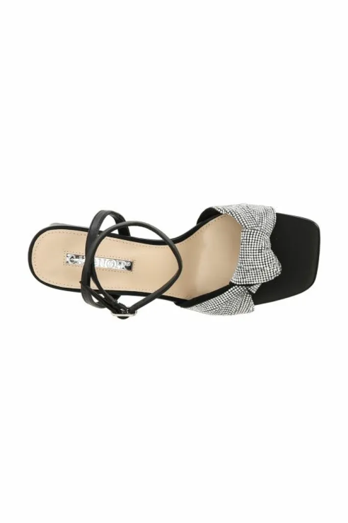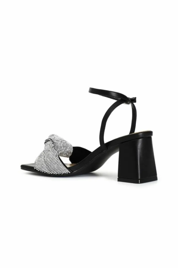 Sandali con maxi nodo in strass. tacco alto largo.