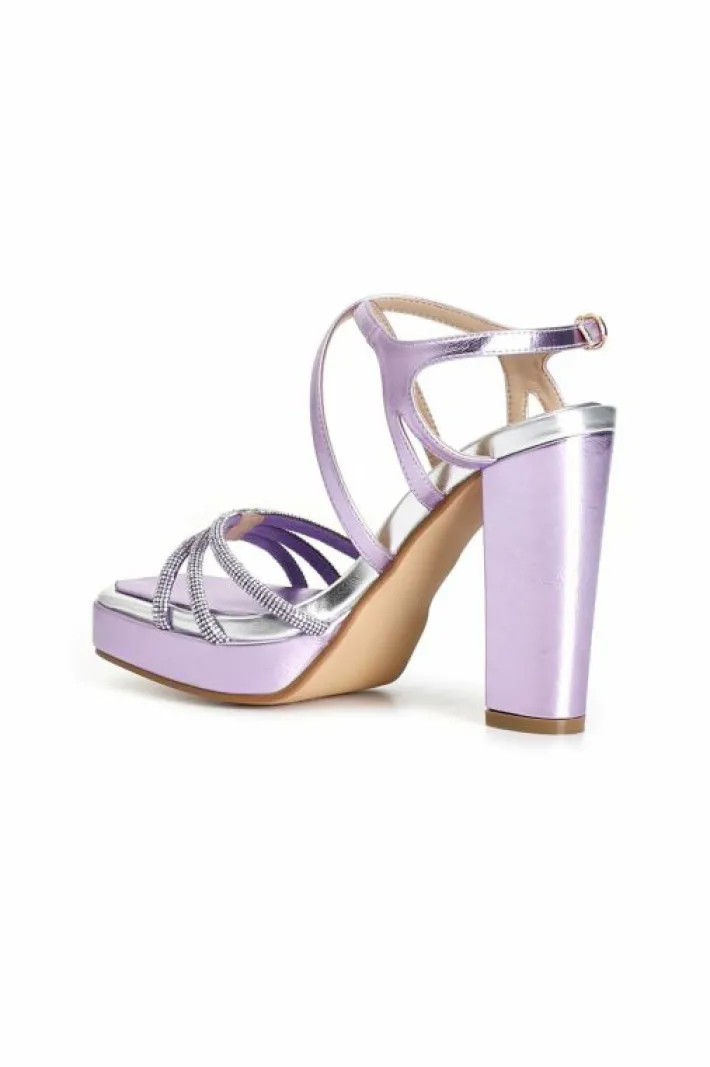 Sandali con tre laccini con strass e plateaux. tacco h. 115mm