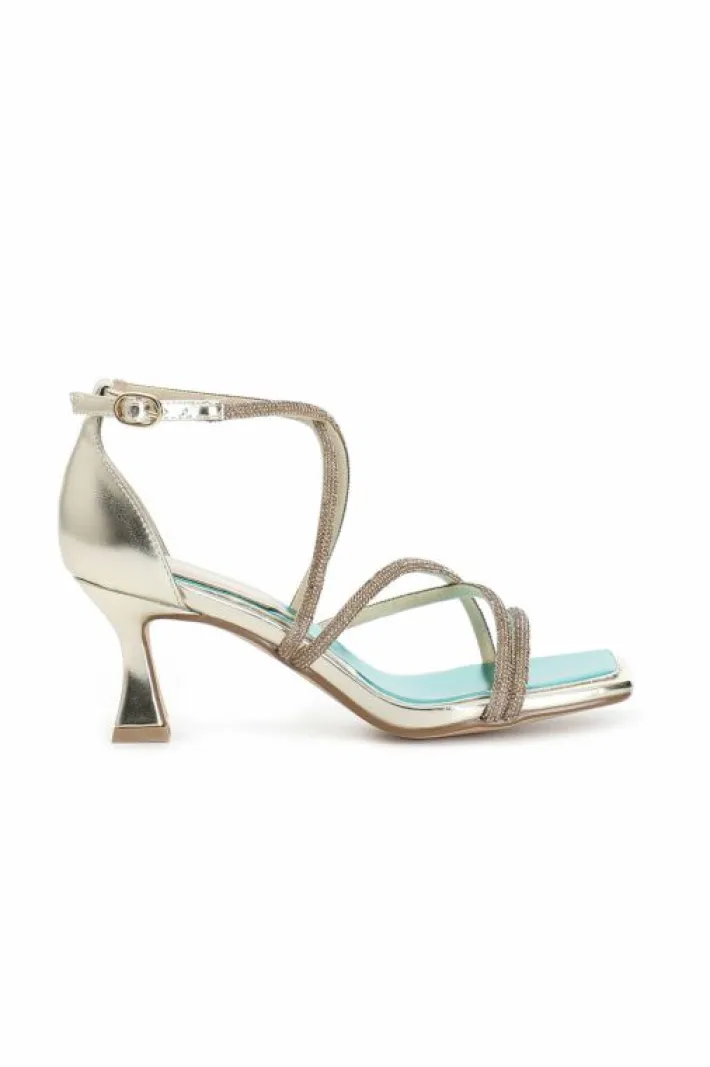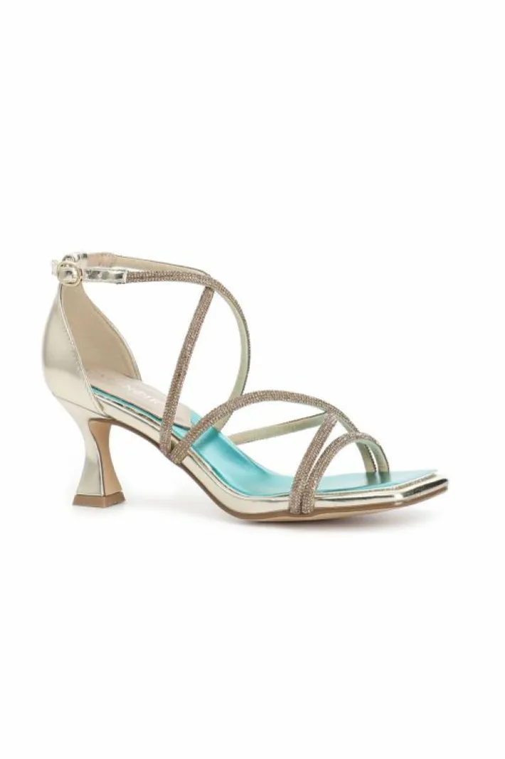 Sandali chiuso dietro e doppio incrocio con strass. tacco h. 70mm