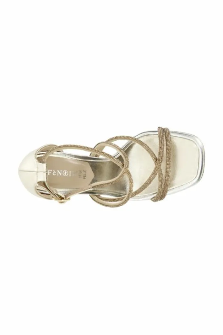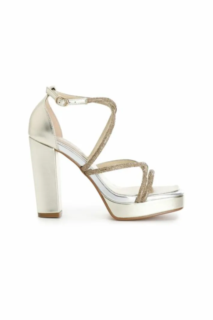 Sandali con strass chiuso dietro cinturino alla caviglia e plateaux. tacco h. 115mm