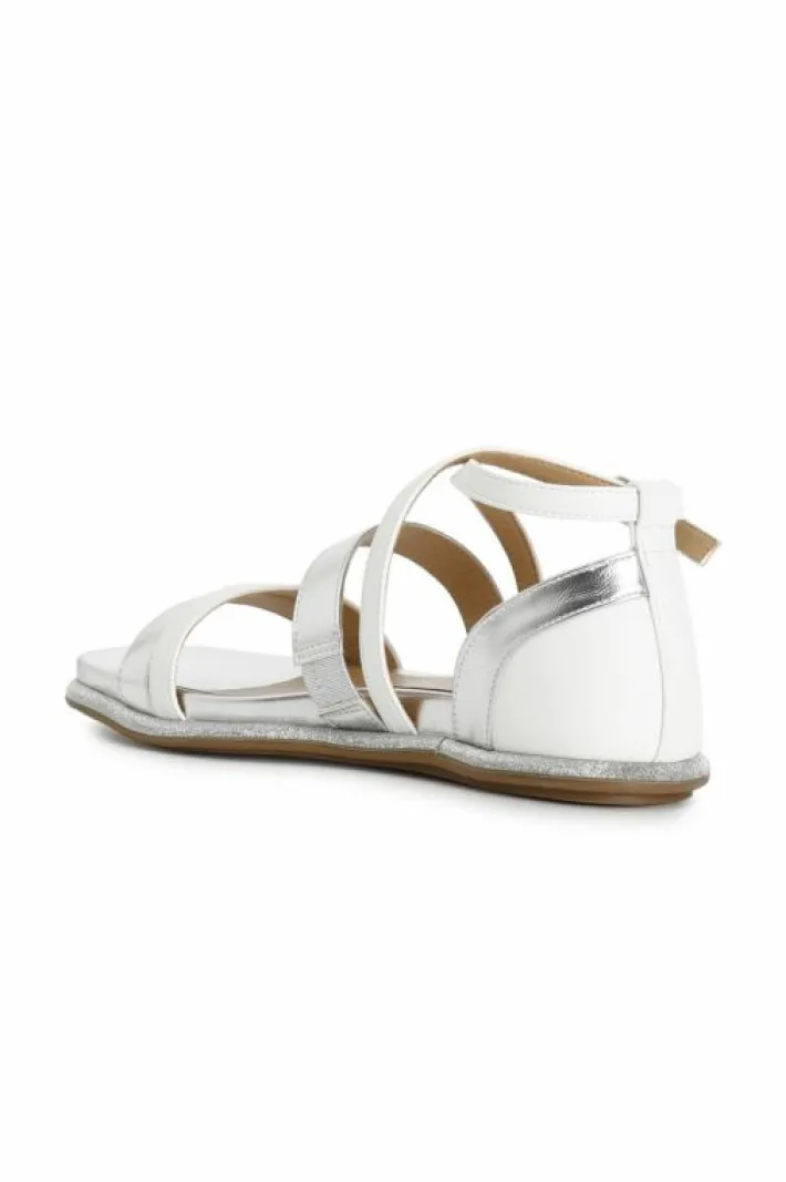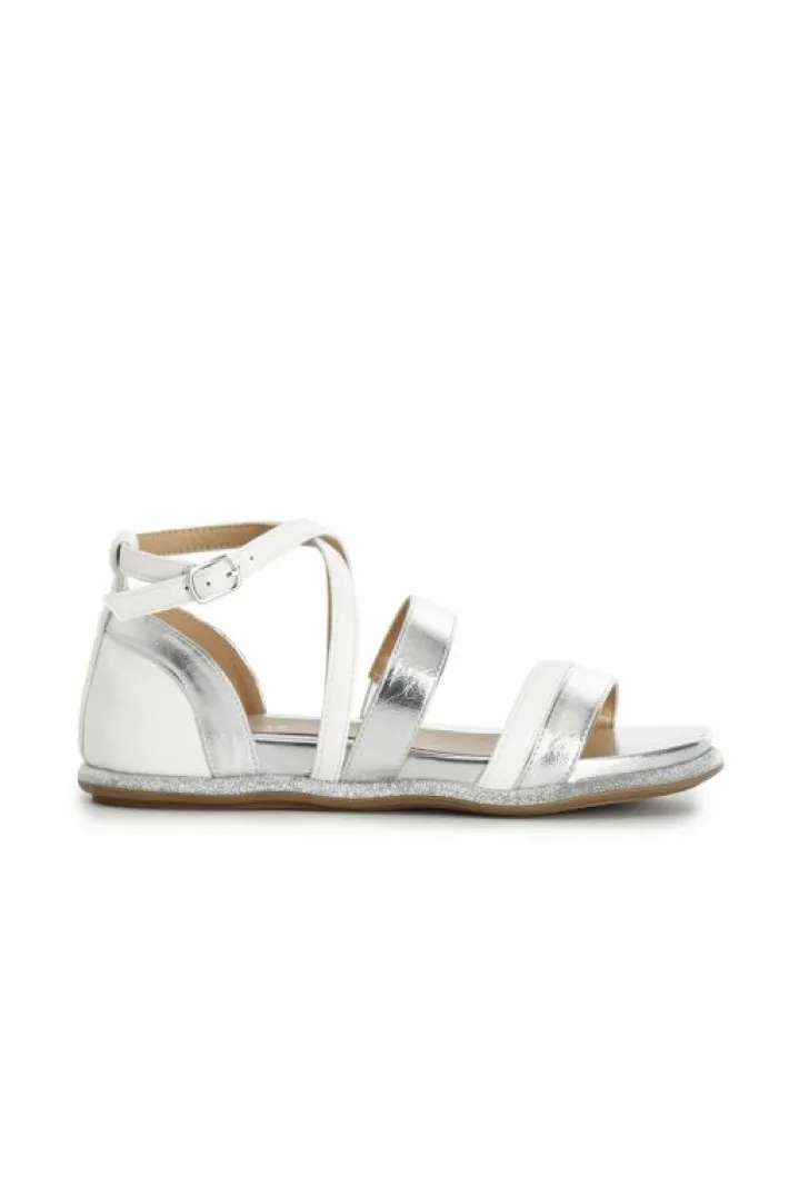Sandali bassi in similpelle laminata multicolor dai toni pastello. tallone coperto e cinturino alla caviglia.