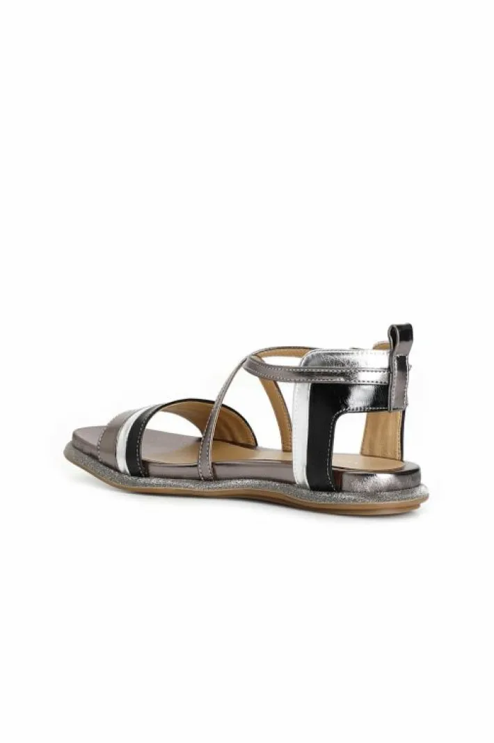 Sandali bassi in similpelle laminata multicolor dai toni pastello. il tallone è scoperto ma sorretto allo stesso tempo …
