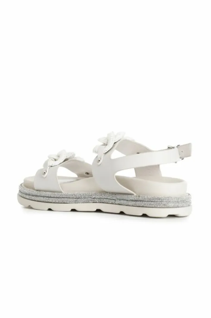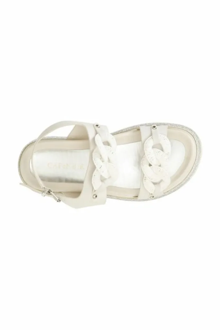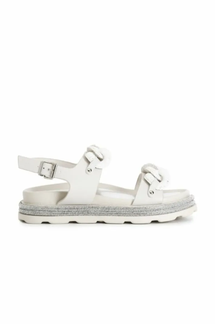 Sandali frate con doppia catena in tono effetto color block. comodo fussbett e inserto di strass laterale sulla suola. t…