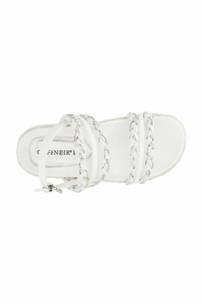 Sandali frate color block in raffia intrecciata con inserto strass. comodo footbed e la zeppa è fasciata in raffia.