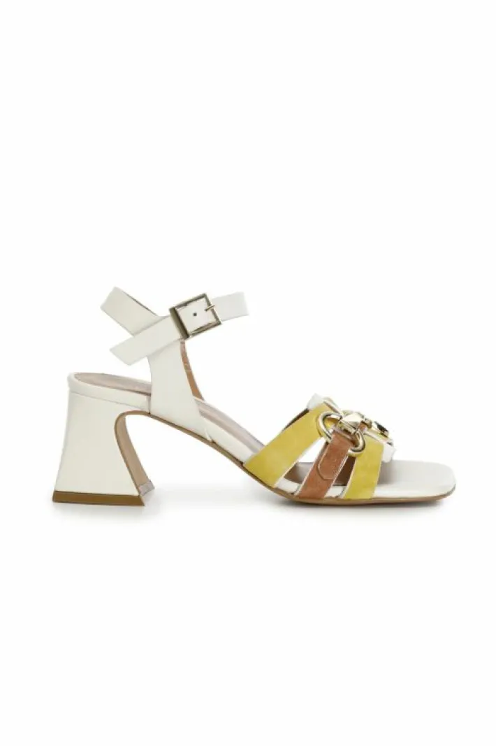 Sandali modello gilda in pelle e pelle scamosciata bicolor con morsetto. tacco h70