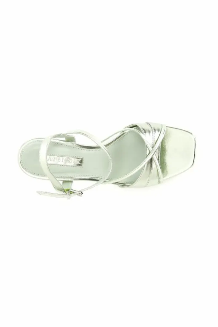 Sandali modello gilda effetto metallizzato. cinturino regolabile alla caviglia. tacco alto 70mm.