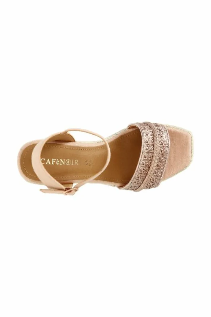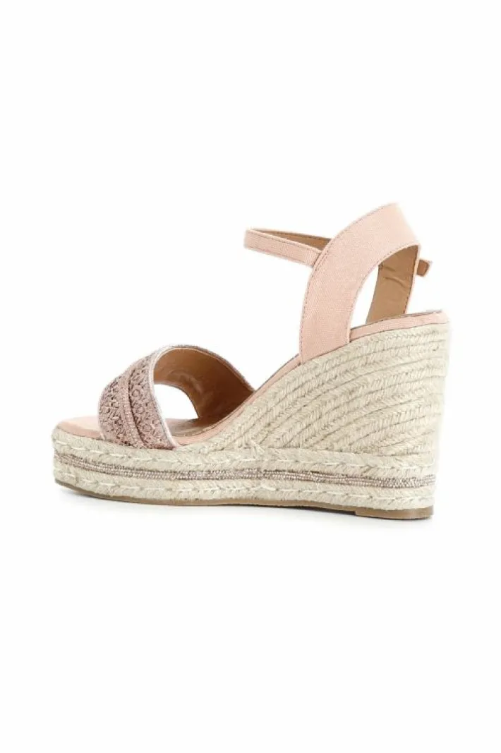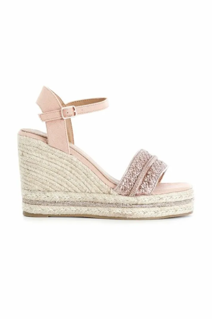 Sandali modello gilda in rafia e inserto in microstrass. zeppa corda impreziosita da una fascia in microstrass.