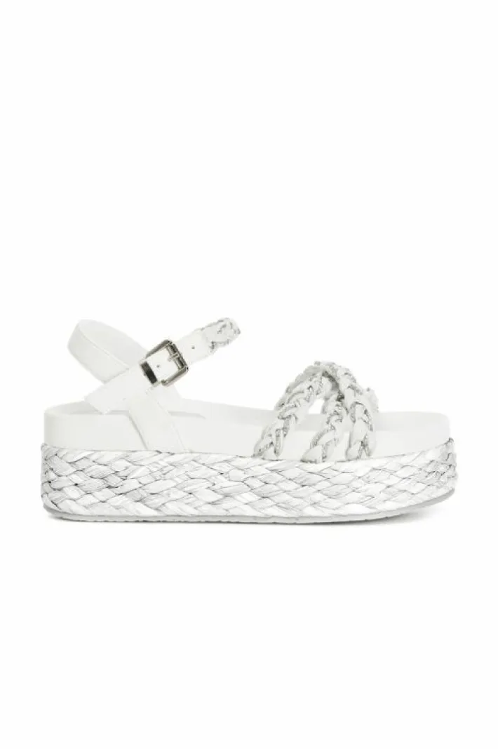 Sandali modello gilda color block con tre fasce in raffia intrecciate tra loro e con inserto in strass. comodo footbed e…