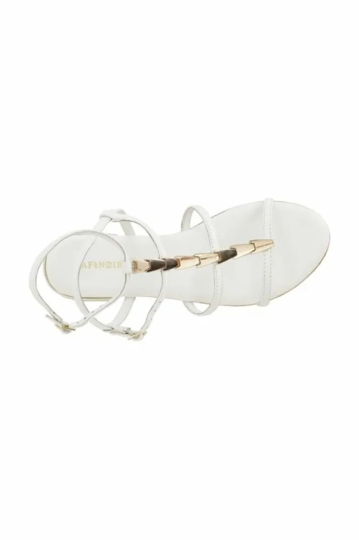 Sandali in pelle stile gladiatore con accessorio dorato. doppio cinturino regolabile.