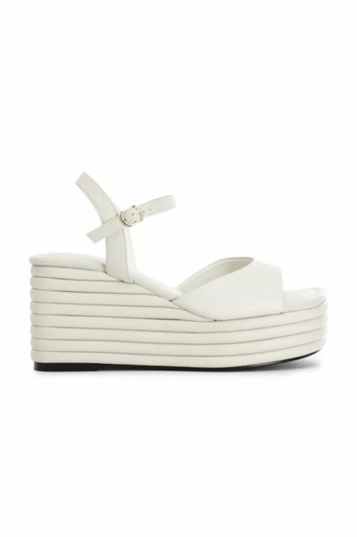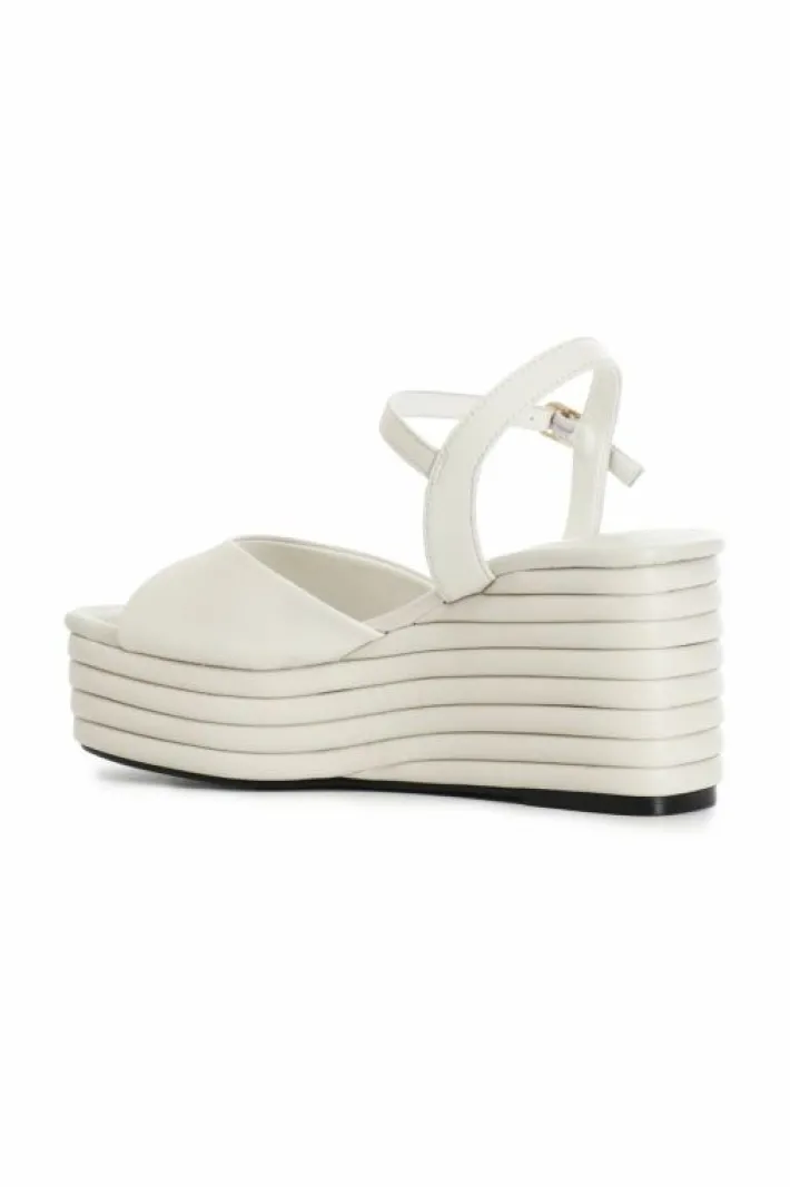 Sandali zeppa in nappa con cinturino alla caviglia. il comodo soletto imbottito in vera pelle fa risultare la calzatura comoda anche dopo svariate ore di utilizzo. il tacco è alto 70mm il plateau invece è di 35mm.