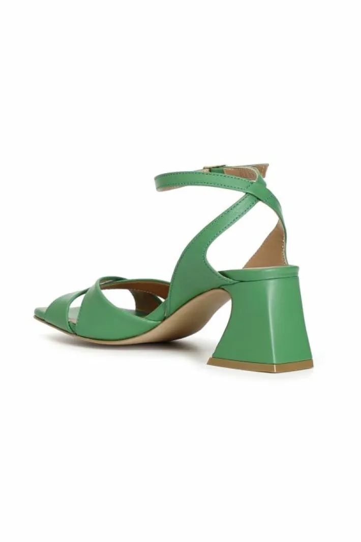 Sandali in pelle con incrocio sul davanti e laccio alla caviglia. tacco h. 70mm