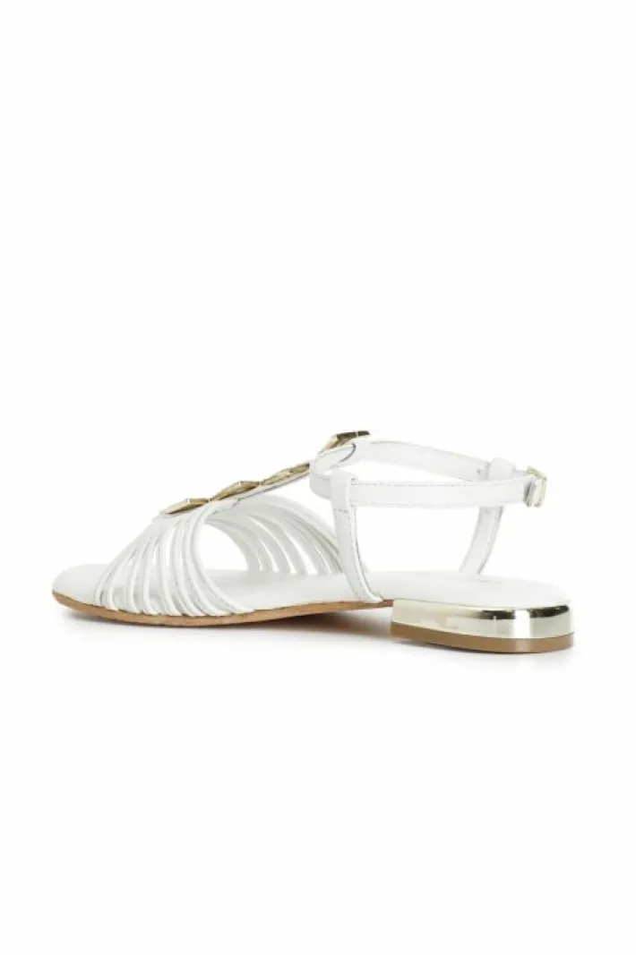 Sandali donna in pelle mignon. accessorio triangoli strass. cinturino con fibbia alla caviglia.