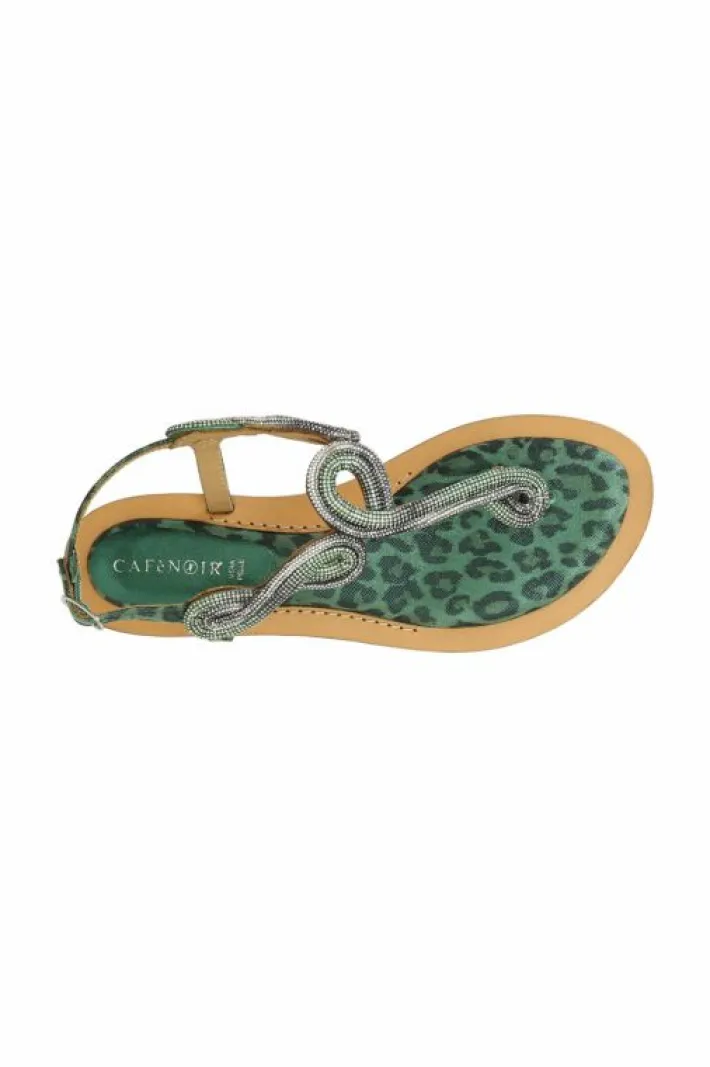 Sandalo infradito in camoscio e stampa maculata con accessorio strass. comodo soletto imbottito per una calzata morbida. tacco alto 15mm. calzatura perfetta da abbinare a molteplici look.